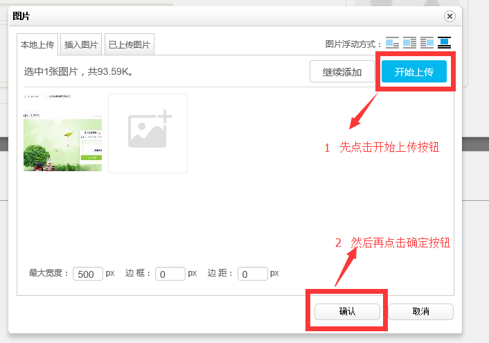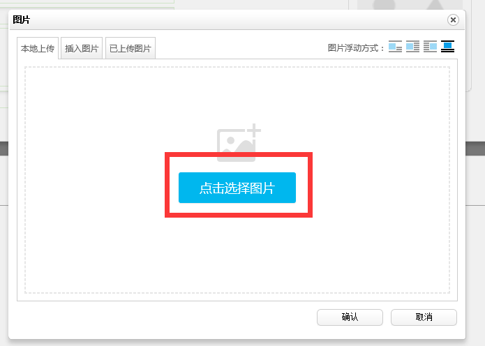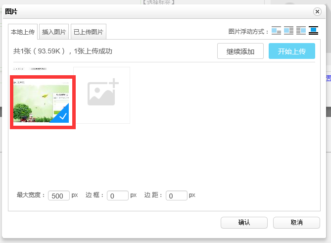 点击完开始上传之后,图片上面会出现一个蓝色的对号,这时候再点击确定按钮,图片插入进来了