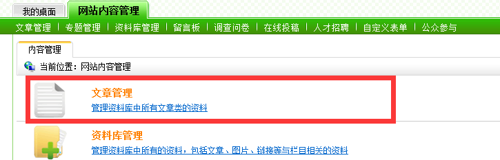 4.需要发布文章就点击“网站内容管理”下的“文章管理”,如下图