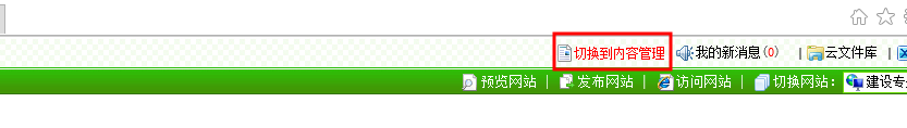 需要注意的是登陆进去之后假如不是上图页面,需要点击一下红色文字“切换到内容管理”,如下图