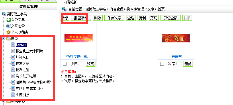 一些网站首页有轮播展示图片,要增加或者删除的时候还是回到网站内容管理界面,点击资料库管理